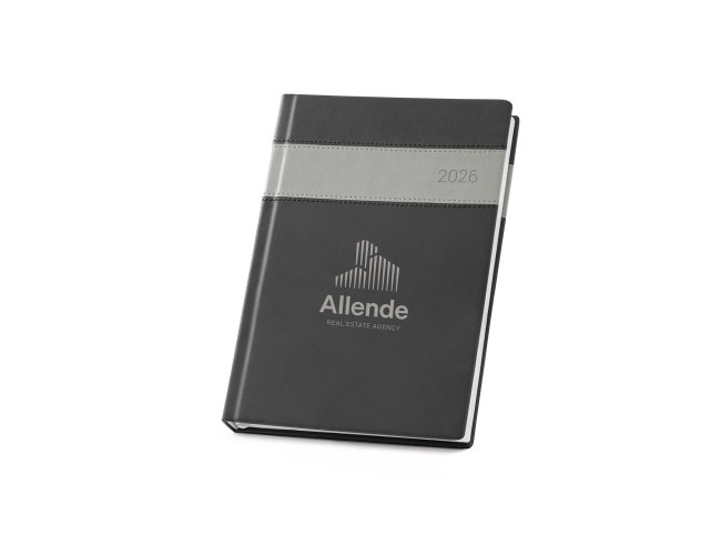 Agenda A5 em PU com marcador em fita. Está organizada num plano diário (70 g/m²). 148 x 210 mm