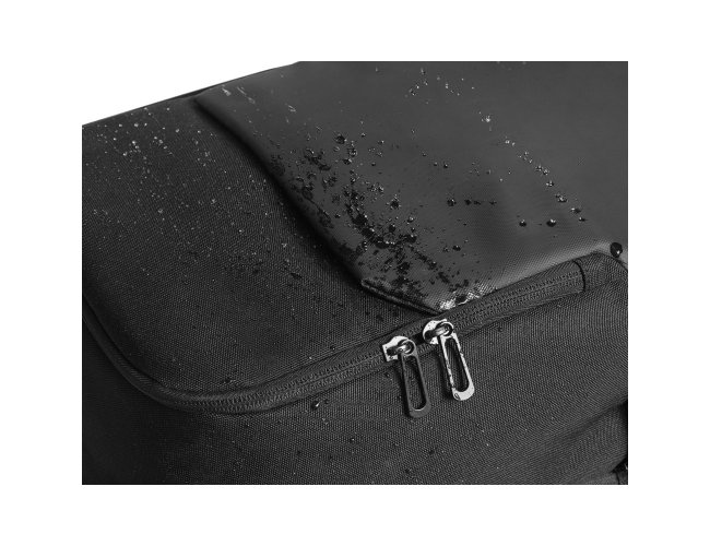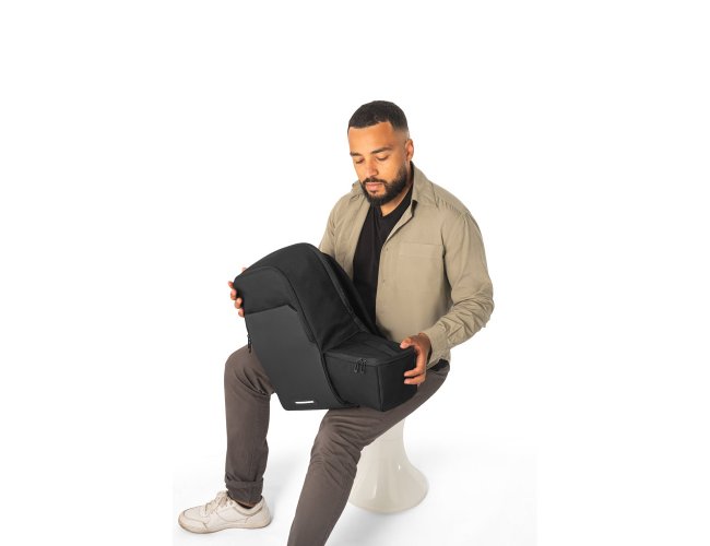 Mochila 2 em 1 com bolsa térmica que permite a sua utilização em conjunto ou separado. Mochila em 900D poliéster reciclado (100% rPET) com bolso e fundo em 600D, poliéster reciclado (100% rPET), de alta densidade com revestimento resistente à água. A mochila é totalmente almofadada e tem interior forrado em 210D poliéster reciclado (100% rPET). Possui 2 compartimentos principais: um compartimento traseiro almofadado para notebook até 17.3” e um compartimento frontal espaçoso com divisória amovível que permite arrumar a sua bolsa térmica no fundo (inclusa). Bolso frontal com zíper e detalhe refletor. Bolso lateral ideal para transportar a sua squeeze e parte posterior com acolchoamento extra e alça para trolley. Capacidade até 20 L. A bolsa térmica almofadada em 900D rPET com isolamento em PEVA. Capacidade 4,5 L. Mochila: 300 x 460 x 160 mm | Bolsa térmica: 240 x 150 x 140 mm