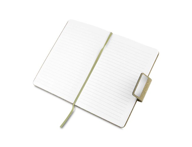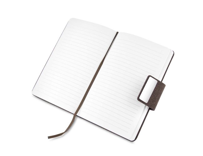 Caderno de anotações com capa em PU e fibra de chá ou café, 80 folhas 70 g/m², engate para caneta com fechamento magnético e placa de metal,não acompanha caneta.