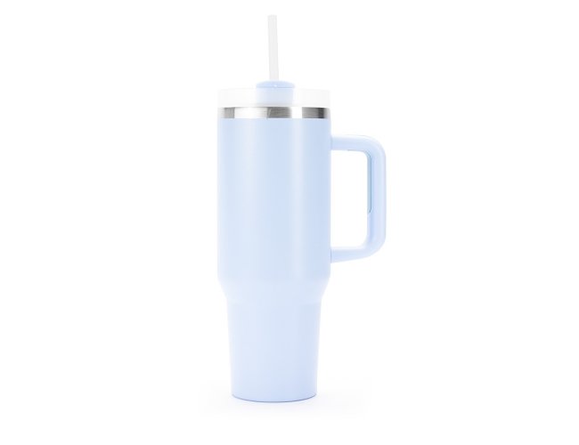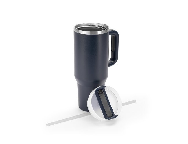 Caneca térmica com capacidade de 1,2 litros feita em inox 304 com parede dupla, contém tampa acrílica rosqueável com acesso para canudo e pegador plástico com aderência emborrachada. Acompanha canudo plástico.