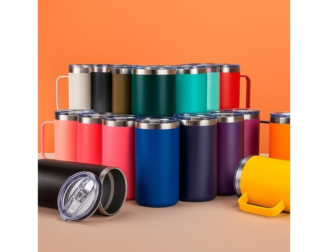 Caneca térmica em inox livre de BPA com pintura eletrostática e capacidade de até 500ml. Apresenta estrutura de parede dupla e vedação a vácuo, permitindo a conservação da temperatura de líquidos por mais tempo. Possui tampa em plástico com proteção para o bocal.