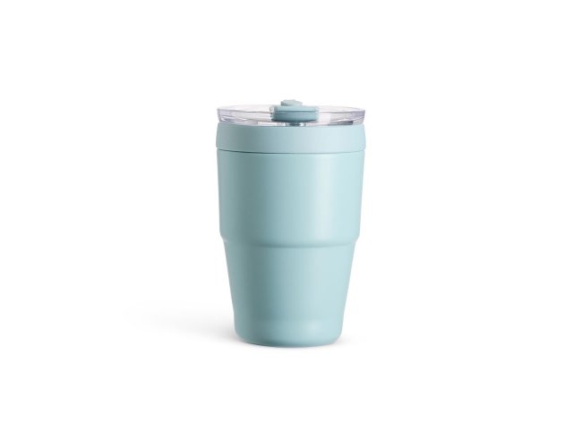 Caneca térmica em inox com pintura eletrostática e capacidade de até 600ml. Apresenta estrutura de parede dupla, base antiderrapante e tampa plástica com vedação a vácuo, protetor emborrachado para o bocal com acesso para canudo. Acompanha canudo de inox com ponta removível em plástico.