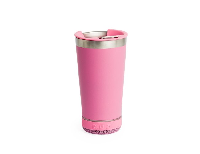 Copo térmico de inox com caixa de som e capacidade 400ml. Contém tampa com abridor. Caixa de som bluetooth com botão para ligar/desligar, botões para aumentar diminuir volume/ avançar e retroceder faixas. Acompanha cabo USB Tipo-C. Obs.: A caixa de som não é a prova dágua, para a higienização do copo é necessário desrosquear a caixa de som para remove-la.