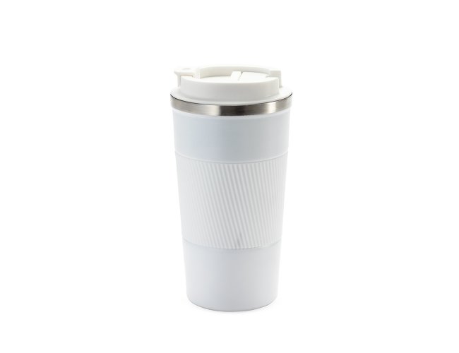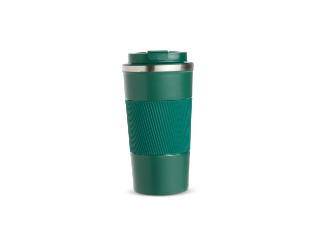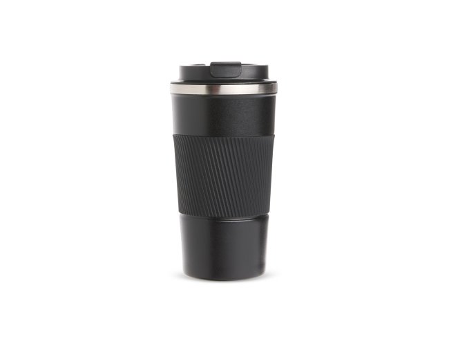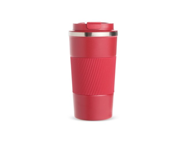Copo térmico em inox 304 com pintura eletrostática e capacidade de até 500ml. Possui parede dupla, vedação a vácuo e base emborrachada antiderrapante. Conta ainda com tampa rosqueável em plástico com trava no bocal e luva removível em silicone.