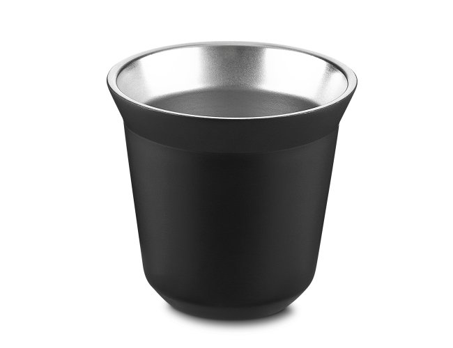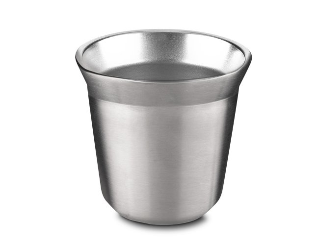 Copo em inox com capacidade máxima de 80ml. Possui estrutura de parede dupla que permite manter a temperatura de líquidos por mais tempo.