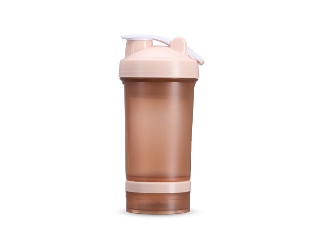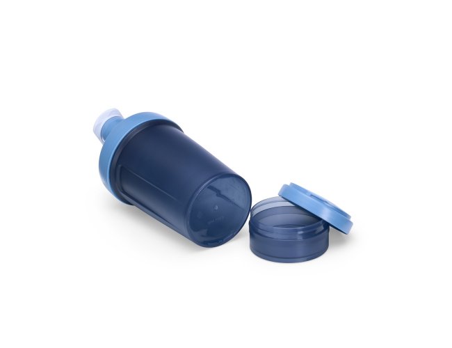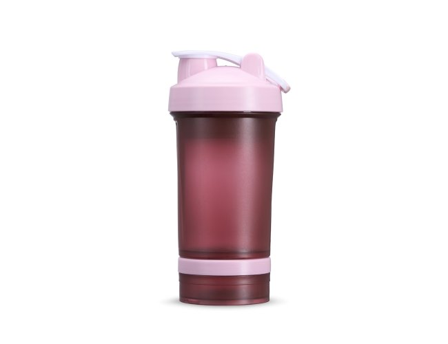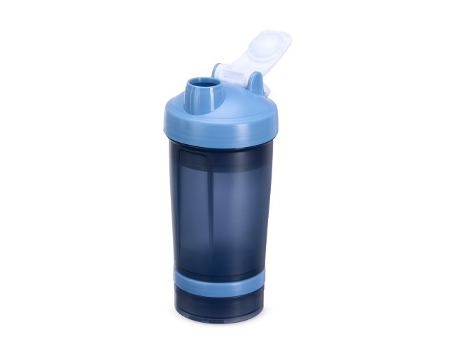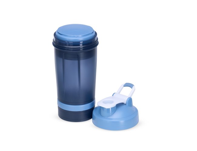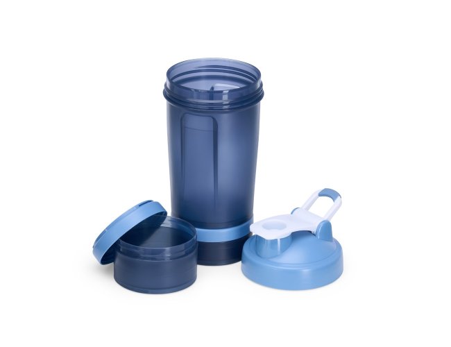 Coqueteleira com capacidade de 500ml e mais 2 compartimentos extras de 150ml e 100ml, todos feitos em polipropileno, livres de BPA. Copo contendo detalhes laterais e escala de medições em ml e oz. Tampa rosqueável com bocal, trava de segurança e alça para transporte. Acompanha misturador de mola.