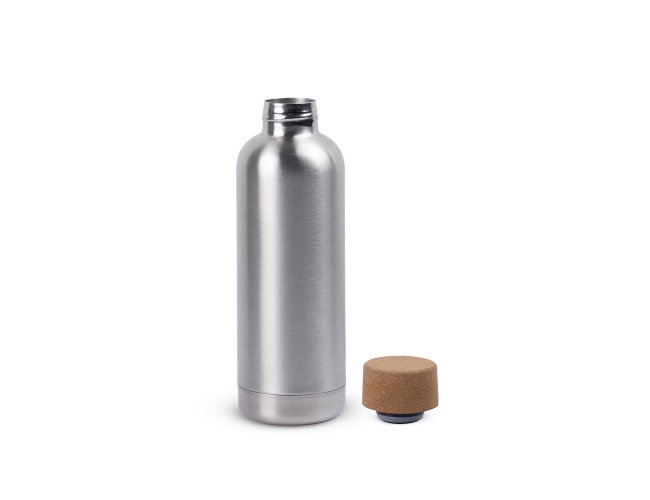 DALEY. Squeeze em aço inox de parede simples, com tampa em cortiça 760 mL
