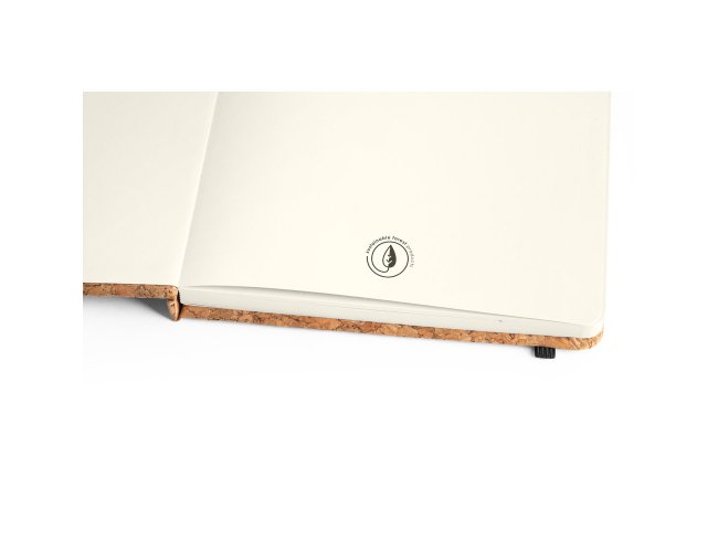 Conjunto decaderno A5 e esferográfica em cortiça. Bloco de capa dura em cortiça, com 192 páginas pautadas cor marfim, em papel proveniente de gestão florestal sustentável. Esferográfica em cortiça de escrita em azul. Fornecido em caixa presente de papel kraft, proveniente de gestão florestal sustentável. A cor e o resultado da impressão nos materiais naturais pode variar entre produtos. 140 x 210 mm