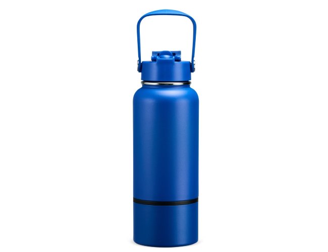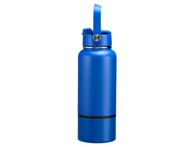 Garrafa térmica em inox com pintura eletrostática e capacidade de até 700ml. Apresenta estrutura interna de parede dupla e vedação a vácuo, o que ajuda a conservar a temperatura de líquidos por mais tempo. Conta ainda com fundo removível. Possui tampa plástica rosqueável com protetor para o bocal, bico flip, canudo interno removível e alça fixa para transporte.