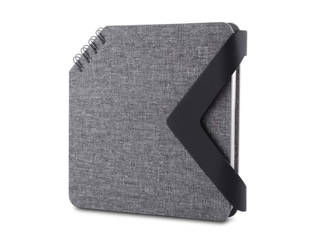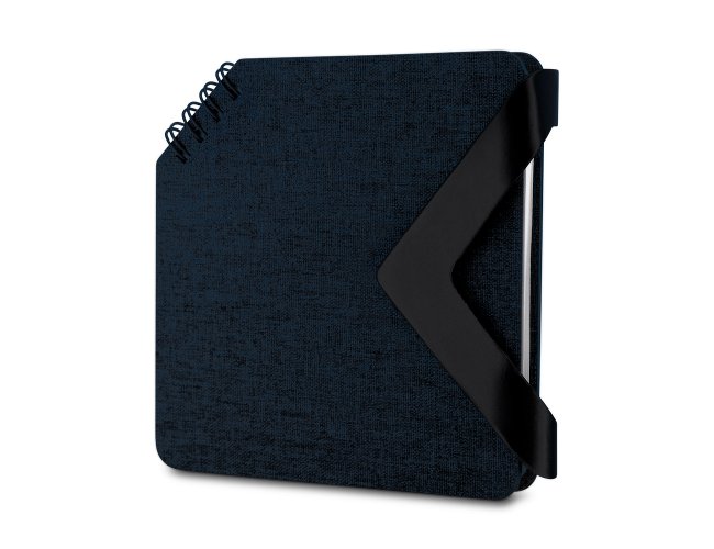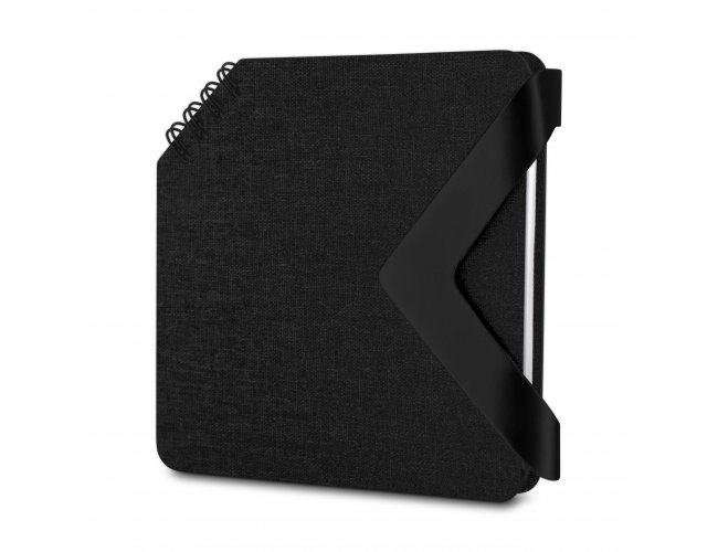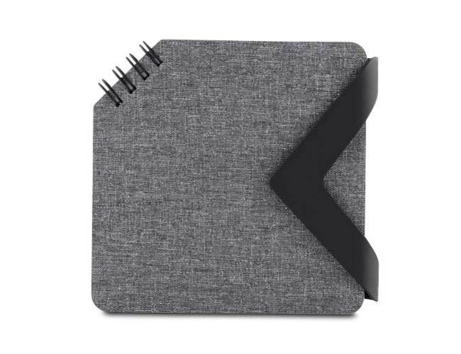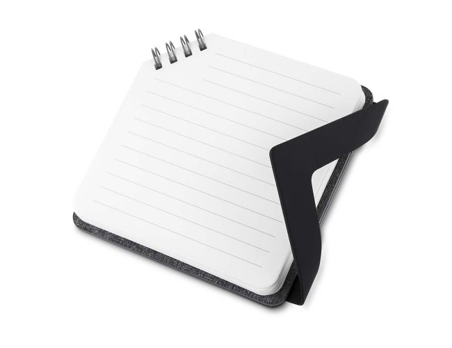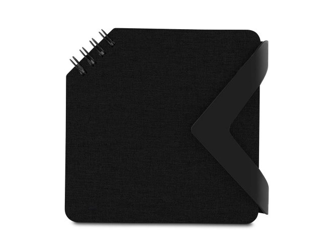 Mini caderno com capa em RPET e fecho magnético em PU, miolo bege composto por 70 folhas pautadas em papel 100g/m².