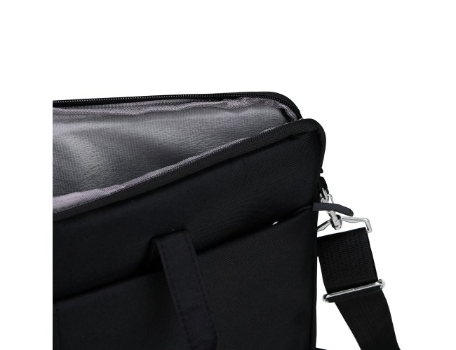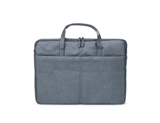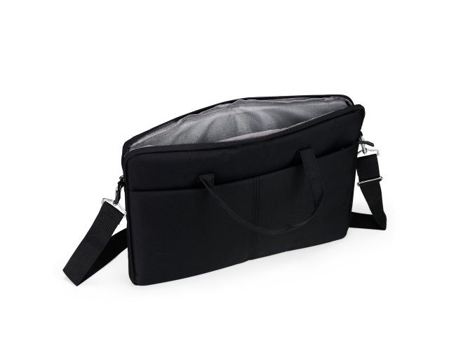 Pasta para notebook em poliéster impermeável, fechamento em zíper e capacidade para dispositivos de até 15,6 polegadas. Possui compartimento principal acolchoado e bolso frontal. Conta ainda com duas alças de mão, duas abas menores para encaixe de alça transversal removível e faixa posterior para acoplar em malas. Acompanha alça transversal ajustável.