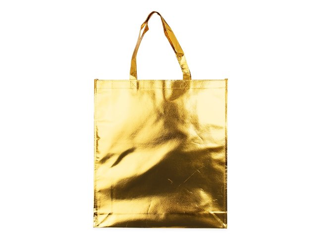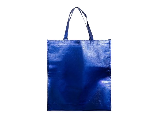 Sacola confeccionada em TNT com revestimento externo laminado e duas alças costuradas.