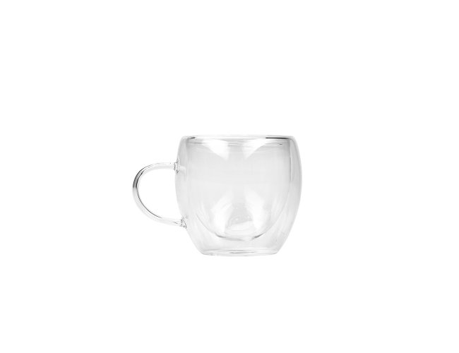 Uma xícara para acompanhar os momentos mais leves de todos os dias com uma dose de café ou chá. Com capacidade de 80ml, feita em vidro de alta qualidade e design sofisticado e igualmente agradável ao toque. Além disso, sua construção em parede dupla possibilita a conservação do líquido, quente ou frio, por mais tempo e sem deixar a temperatura entrar em contato com a parede externa da xícara.