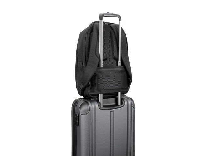 Mochila antirroubo com design único pensado para garantir maior segurança aos seus dispositivos e documentos. Composta por poliéster reciclado (rPET) 600D twill, resistente à água, com detalhes em PU e interior em poliéster reciclado (rPET) 210D. Possui um compartimento principal com bolso almofadado para notebook até 17.3" e para tablet até 10.5", bolsos laterais e um compartimento frontal. A mochila oferece-lhe um maior conforto nas suas viagens devido à sua pega superior almofadada e parte posterior com acolchoamento extra e alça para trolley com bolso para pequenos objetos. Os bolsos internos facilitam na arrumação e organização do seu material. Capacidade até 20 L. 310 x 450 x 200 mm