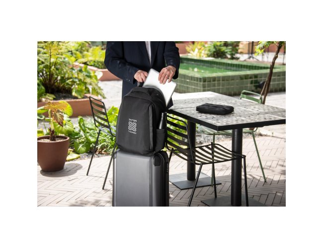 YANGON BPACK. Mochila antirroubo, em poliéster reciclado 600D twill, resistente à água, e bolso para notebook 17.3" 20 L